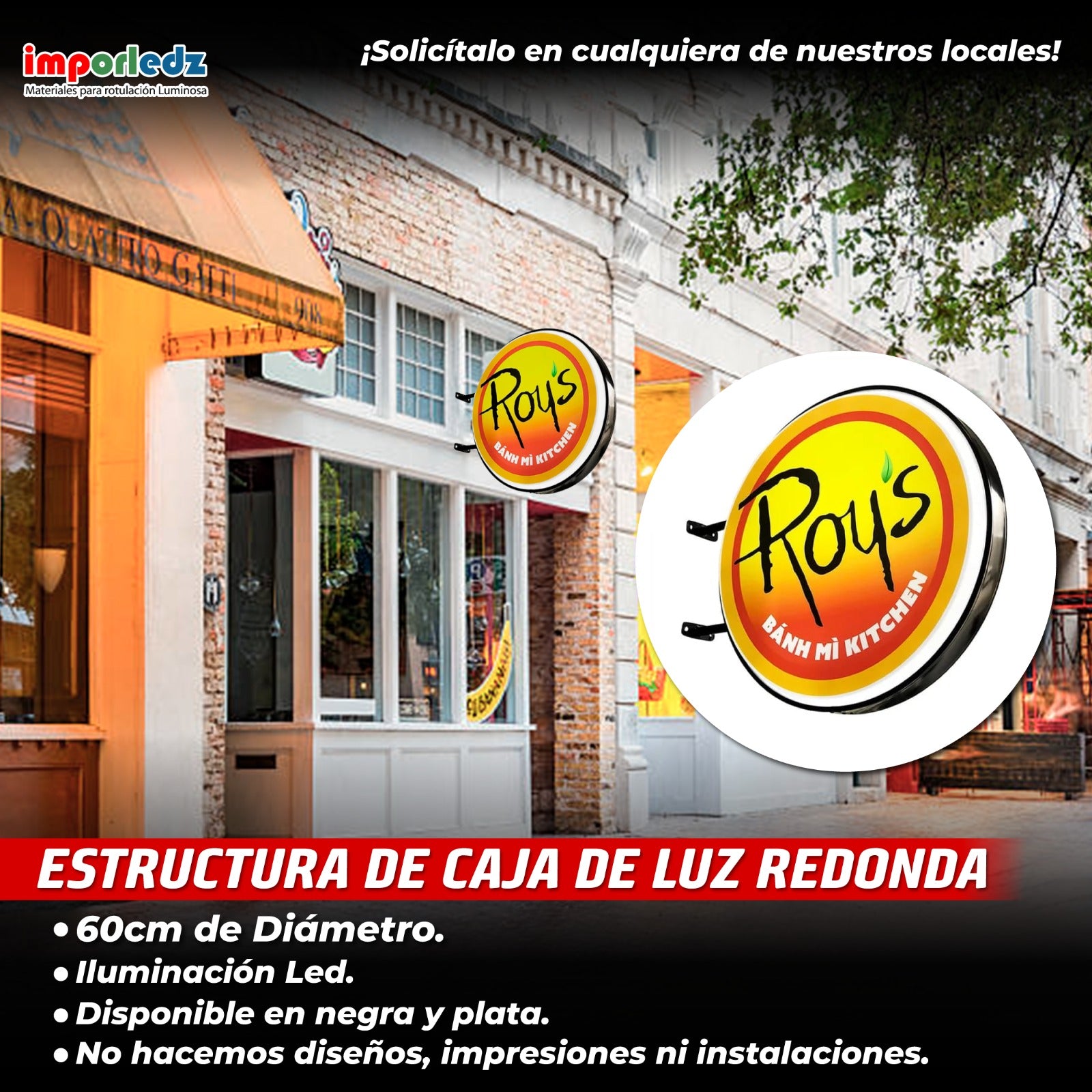 La caja de luz redonda de 60 cm es perfecta para publicidad en cualquier negocio. Con doble lado y conexión de 110 voltios, proporciona una visibilidad excepcional para atraer clientes. Su diseño exterior la hace ideal para mostrar tus productos y servicios de manera llamativa y efectiva. ¡Haz que tu negocio destaque con esta caja de luz!